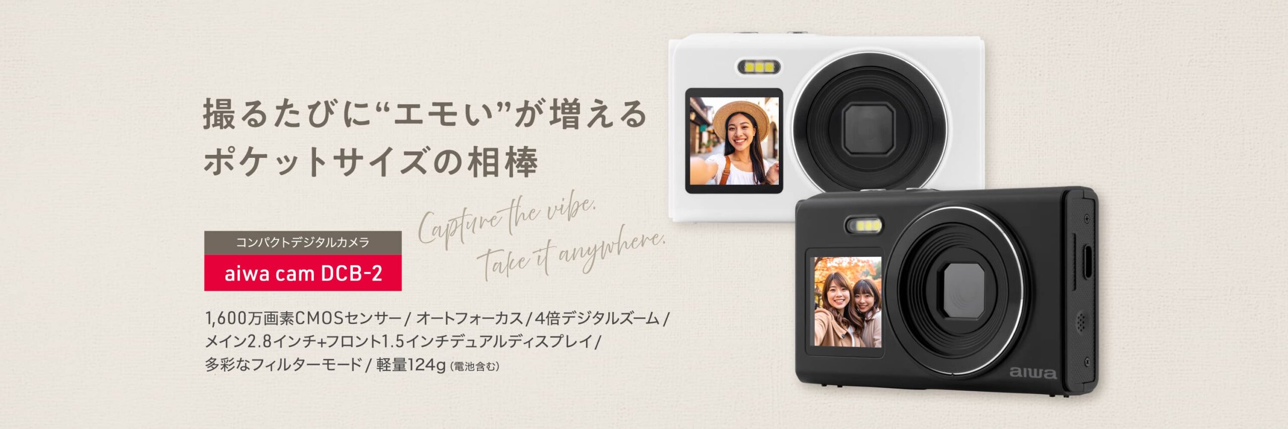 スマートフォンとは少し違うレトロな質感で、撮ることそのものが楽しみになるコンパクトデジタルカメラです。